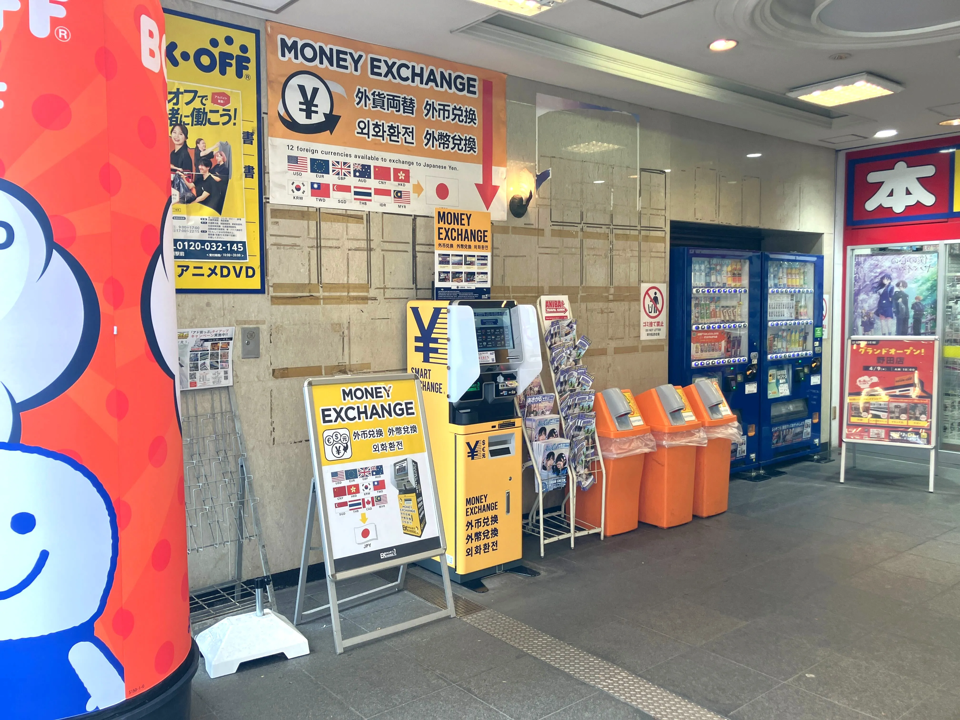 外貨紙幣を日本円に両替できます。 ※外貨から日本円へのみの両替となります。 身分証明書、パスポートも必要ありません。 外貨両替機は店舗営業時間に準じます。 ※メンテナンスのため特定の時間に利用できない場合があ ります。 通常よりお得になる優遇レートクーポンはこちらをクリック。 ※この外貨両替機はクーポン対象外となります。 クーポン対象店舗はこちらをクリック。