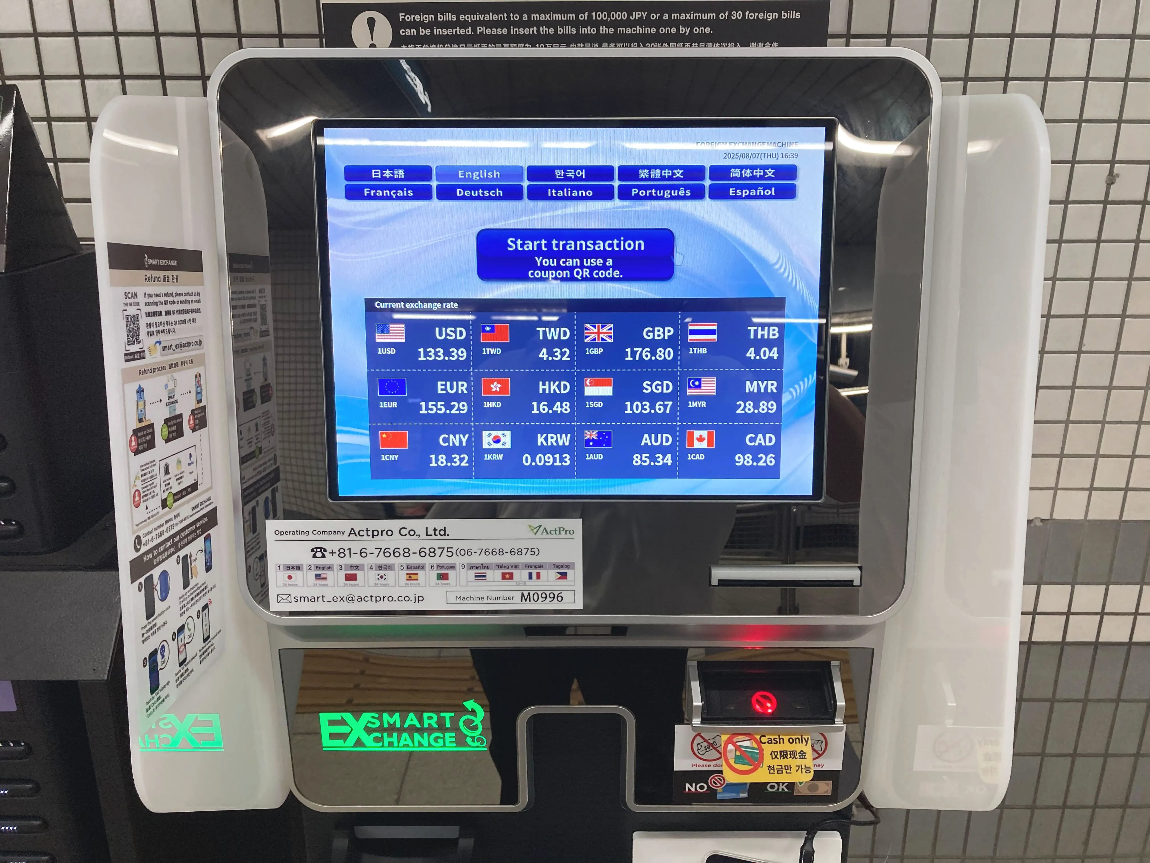 外貨両替機 SMART EXCHANGE 京阪電鉄 七条駅 淀屋橋方面