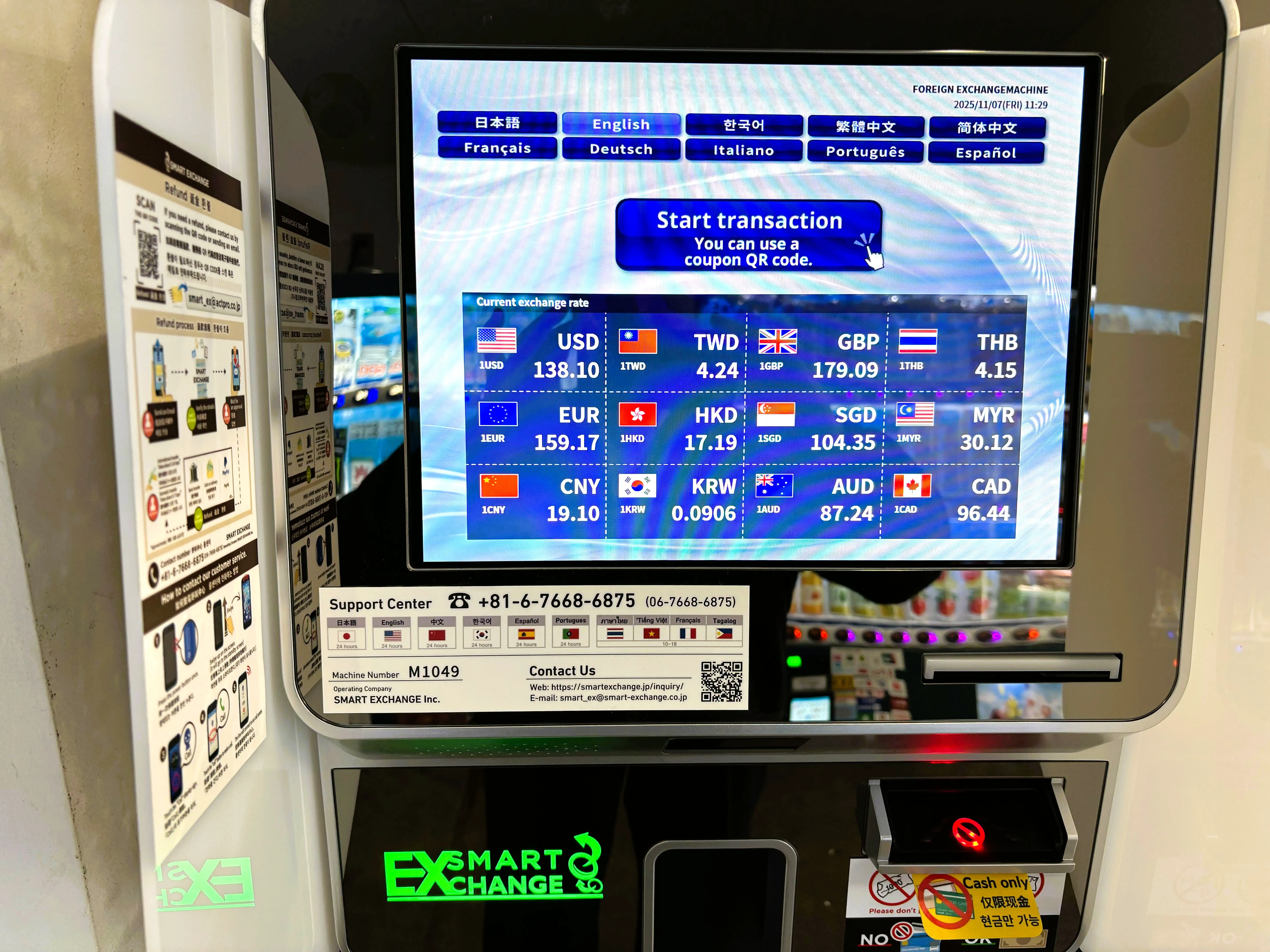 外貨両替機 SMART EXCHANGE 京阪本線 伏見稲荷駅 淀屋橋方面 駅改札内