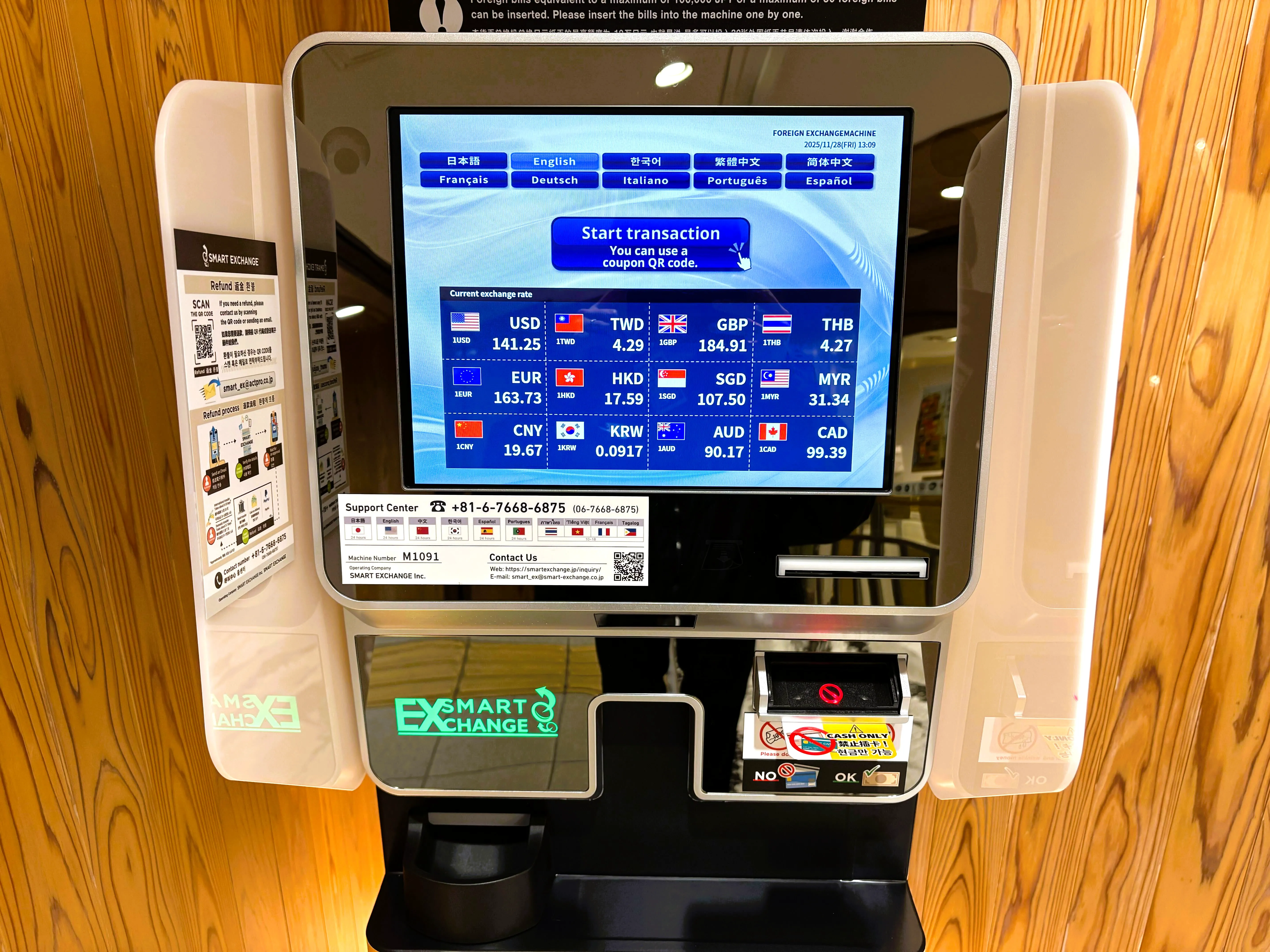 外貨両替機は店舗営業時間に準じます。