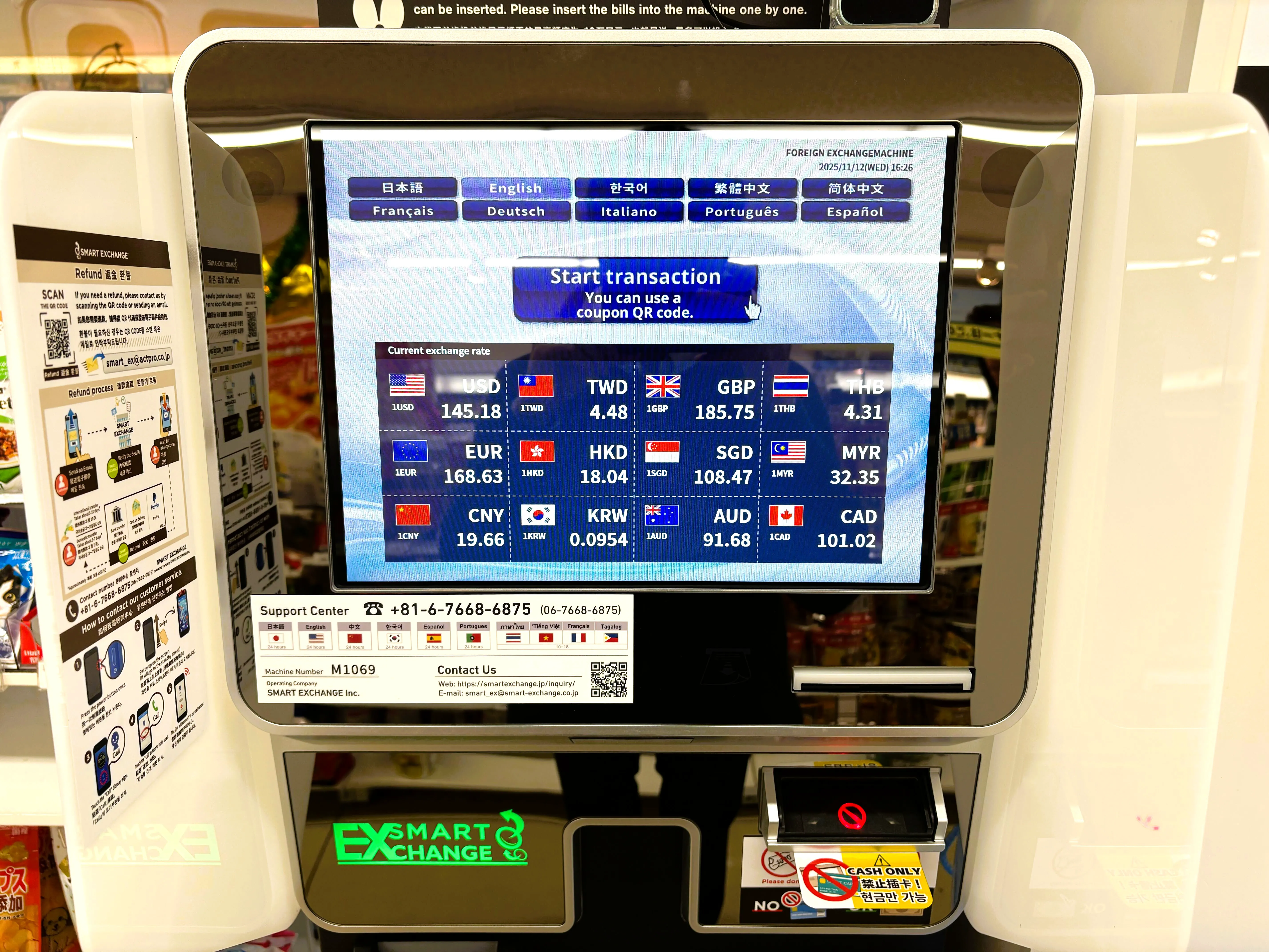 外貨両替機は店舗営業時間に準じます。